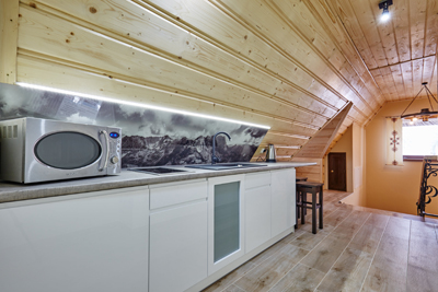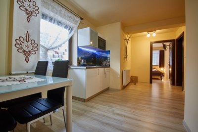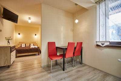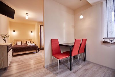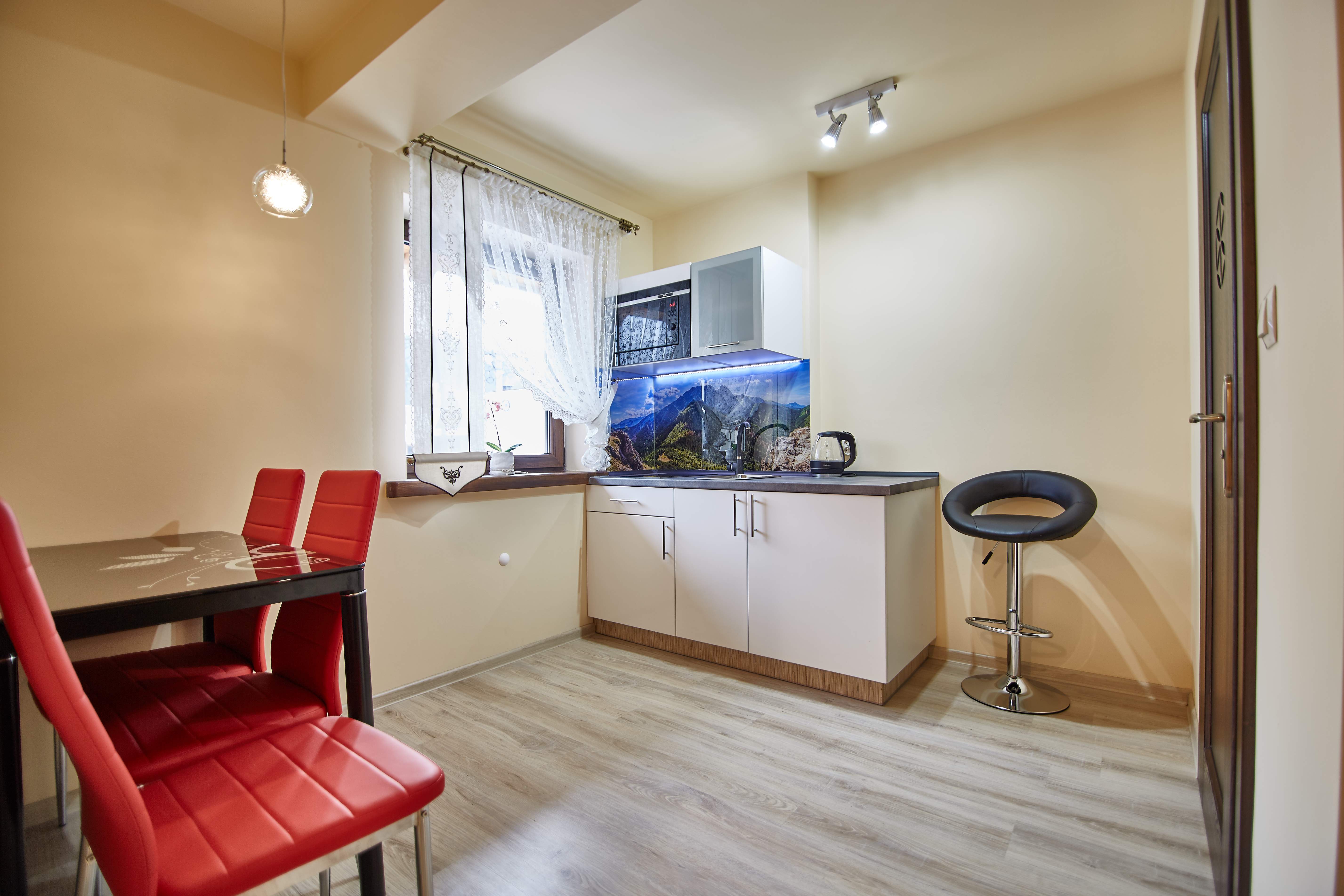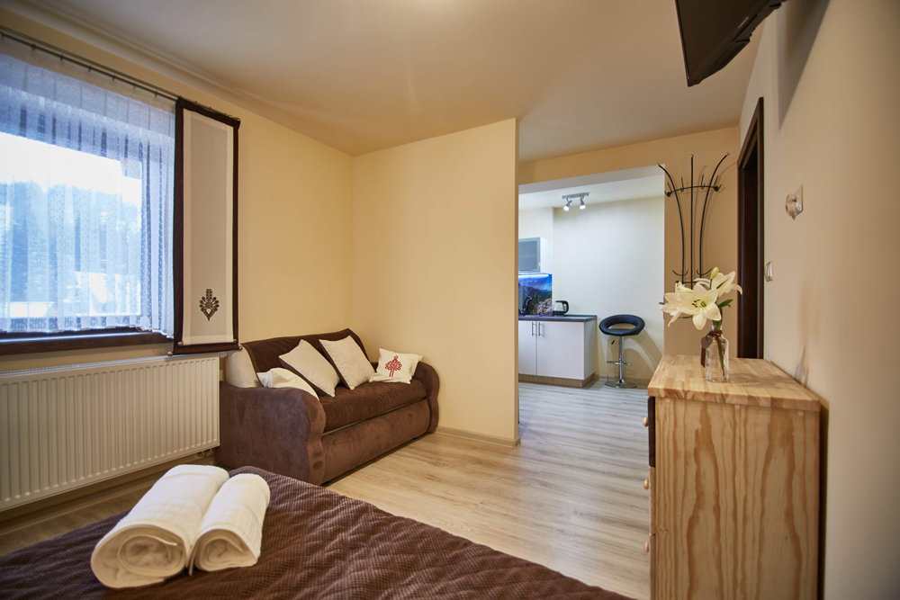 Dla Państwa wygody i komfortu oferujemy dwa eleganckie apartamenty z aneksem kuchennym i wszelkimi udogodnieniami. Apartamenty łączą w sobie surowy podhalański styl z nowoczesnością, co sprawia, że wypoczynek u nas staje się przyjemnością.