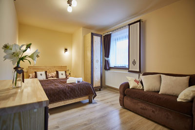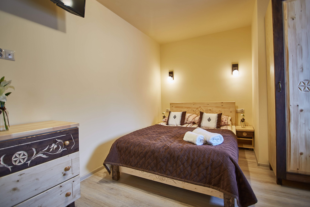 Dodatkowo oferujemy cztery pokoje 2 osobowe. Podobnie jak Nasze Apartamenty łączą urządzone są w podhalańskim stylu.